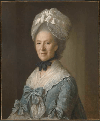 Caps were worn by all classes, the difference being primarily the fineness of the fabric and level of decoration with ruffles and other trim. Women weren’t as likely to wear caps in a formal setting as in doing work or “undress” (at home). Almost always, the caps were white, the exception being a pink cap in one portrait. They might be cotton, linen, organza, etc. Silk ribbons, in any number of colors, were often used to ornament caps. Caps were worn over dressed hair and sometimes a hat was worn over the cap. Today, the caps are de rigor for covering a modern hair style.