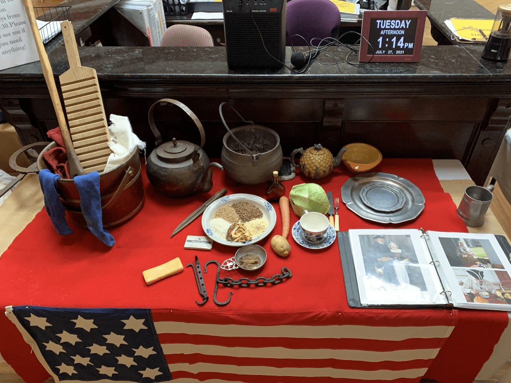 On July 24, Martin and I, along with Rick Wells, presented, on behalf of the Gen. John Archer Elmore Chapter SAR, and Atagi Chapter DAR, the life of a common soldier, women on the home-front, and Camp Followers in Washington’s Army. The latter worked as cooks, laundresses, mending clothing, filling soldiers’ canteens, even on occasion taking up arms.