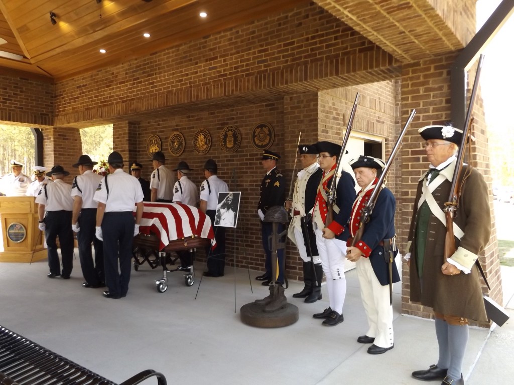 We had the honor of attending the repatriation for WWII PFC William “Bill” Morrison yesterday at the state Veteran’s Memorial Cemetery at Spanish Fort. Color Guard members from the Gen. John Archer Elmore chapter, Joe Barker and Martin Brady, prospective member, Michael Araiza, and Mr. Price from Florida paid their respects on behalf of the SAR during the ceremony.